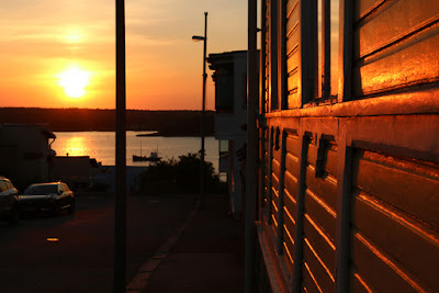 Hier also haben wir unsere Füße zum letzten Mal in die Ostsee gesteckt (ich bin nicht schwimmen gegangen, es war mir zu kalt, aber Gerd hat es einmal gewagt) und am Abend hat uns das zweite Gewitter unserer Reise gebührend verabschiedet – bewundert durch die Scheibe eines Burgerrestaurants hat uns das wenig gejuckt.