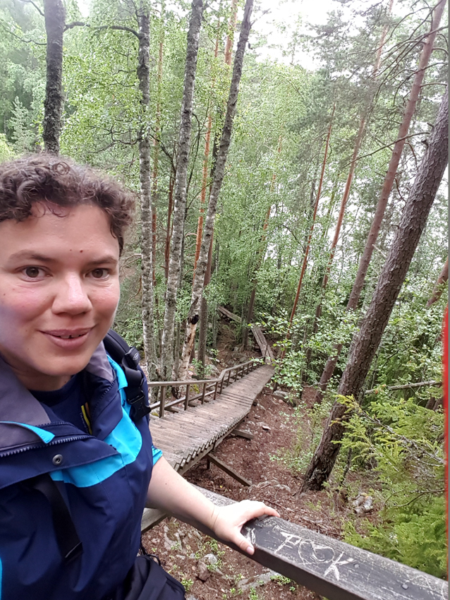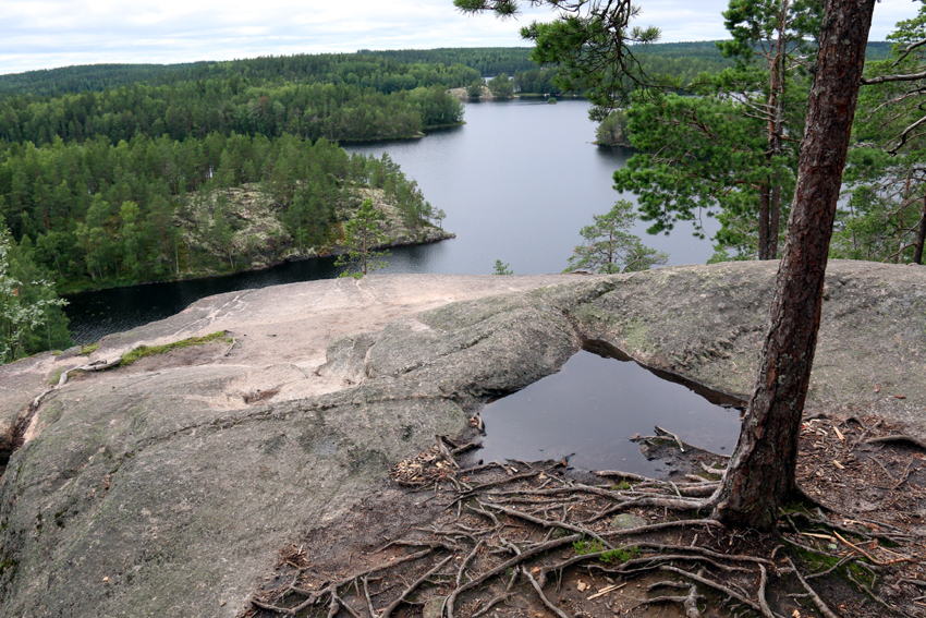 Abseits der Zivilisation ist übrigens relativ: Selbst wenn man mitten im Nationalpark auf von Wurzeln völlig zerfurchten Trampelpfaden unterwegs ist und über Felsen klettert, sind die Wanderwege in Finnland stets perfekt ausgeschildert und markiert. Die Straßen mögen Lehmpisten sein, aber entsprechen exakt der Karte, die wir in der Touristeninfo bekommen haben. Wenn man auf irgendeiner kleinen Insel vor einem Fähr-Fahrplan steht und versucht, ihn zu entziffern, steht sofort eine hilfreiche Touristeninformation-Angestellte hinter einem und spricht nahezu akzentfrei Deutsch.