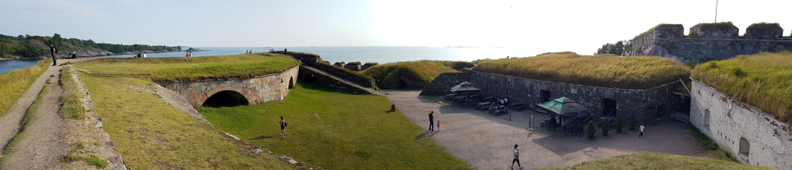 Selbst mit „die Natur hinter uns lassen“ hatte ich Unrecht, denn mit einem regulären Dreitagesticket für die Öffis (18 Euro) kann man auch die Fähre zur Festung Suomenlinna nehmen (nebenbei bemerkt: Sind diese Namen nicht super? Die Straßenschilder in Finnland können manchmal eeeewig lang sein und jedes einzelne Wort bereitet mir allein vom Ansehen Kopfschmerzen, aber die Sprache klingt sehr angenehm. kein Wunder, dass Tolkien als Vorbild für seine Elbensprache nahm.). Es ist unglaublich absurd, inmitten von grünen Hügeln, Klippen und Nonnengänsen diese Abwehrmauern, Kanonen und Flakgeschütze aus verschiedenen Epochen zu finden. Und dass auf dieser Insel ein Flüchtlingsheim eröffnet wurde für Menschen, die gerade vor Krieg geflüchtet sind, zeugt in meinen Augen nicht ganz von Fingerspitzengefühl, aber es hat eine gewisse Symbolik, schließlich sind diese Waffen schon lange nicht mehr im Betrieb.