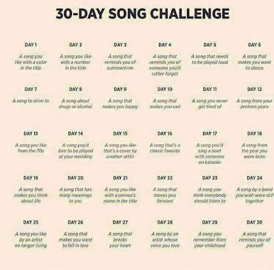Wer mir auf Facebook folgt, hat im Januar dieses Bild vielleicht ein wenig zu oft gesehen, fast jeden Tag, um genau zu sein. Eine Challange, die ich mir ausnahmsweise selbst ausgesucht hatte, obwohl ich diese meist kettenbriefartig zu verbreitenden Dinger nicht leiden kann. Aber ich liebe Musik und es war interessant, darüber nachzudenken, wie die Vorgaben für jeden einzelnen Tag wohl zu interpretieren sind und welche Assoziationen und Erinnerungen sie in mir auslösen. Herausgekommen ist ein schöner Querschnitt durch meine alten und neuen Playlists. Deshalb mag ich das noch einmal am Stück sammeln. Und höre die nächten paar Stunden wahrscheinlich die ganze Liste durch. Vielleicht macht euch das auch Spaß, so als Einstieg ins Wochenende.