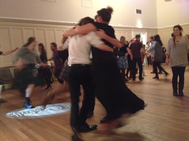 Die Männer im Kilt, erkennt man schnell, sind meist die, die Ahnung haben. Aber jeder Anfänger ist willkommen. Die Band und die freundlichen Mittänzer erklären gern, wie die Schritte gehen, und wenn man mal durcheinanderkommt, lachen sie freundlich. Ein Hochleitungssport nach meinem Geschmack!