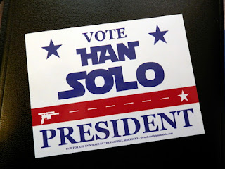 Diese Auftritte helfen mir auch, mich für Lesungen vorzubereiten. Ansonsten kann ich immer nur in wortlosem Staunen da sitzen, wenn die anderen Eigenkompositionen vortragen, zwischen fünf Instrumenten hin und her wechseln, spontan Soli und Harmonien für Lieder entwickeln. Über achtzig wahnsinnig kreative Leute sperren sich drei Tage in einer Jugendherberge ein und machen nichts anderes als Singen, musizieren, tanzen und Seminare übers Liederschreiben hören. Nebenbei wird gemalt, gestickt, gestrickt, geschminkt und selbstgemachte Marmeladen versteigert (Birne-Schokolade, heute Morgen getestet – lecker!). Trotzdem sind sie nicht völlig der Welt entrückt. „The Faithful Sidekicks„, Ersttäter aus Minnesota, starteten in Reaktion auf den US-Wahlkampf eine Kampagne für Han Solo als Präsident – immerhin hat er die Galaxie gerettet, wer will dagegen argumentieren?
